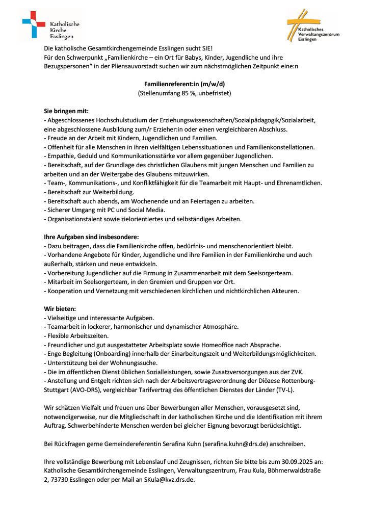 Wir begrüßen Sie auf den Seiten der katholischen Kirchengemeinde St. Elisabeth Esslingen- Pliensauvorstadt!